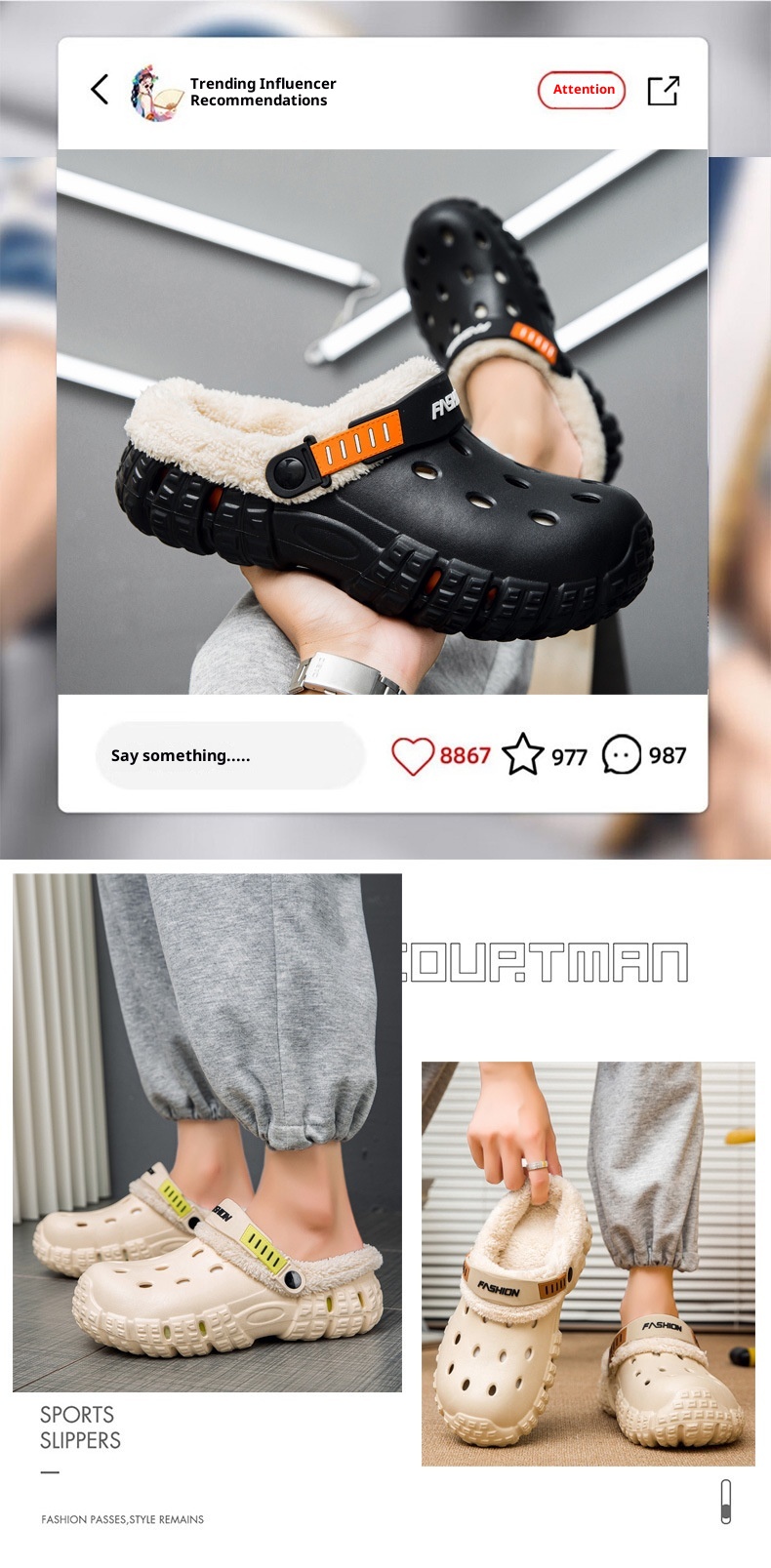 Stomping-feel Crocs Women's Winter Classic Outdoor Fashion Anti-slip Thick Sole